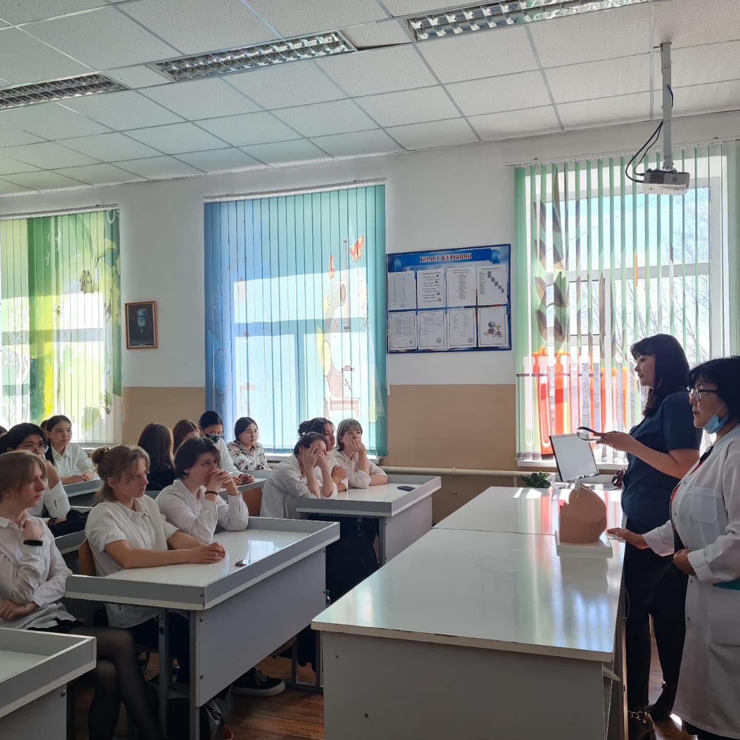8 сәуір күні 12 орта мектепте “Ана үйі” ҚҚ үйлестірушісі Тілеумағанбетова А.Т. 9-11 класс оқушылары арасында “Жасөспірімдер арасындағы жүктіліктің алдын алу” тақырыбында лекция өткізді. Лекцияның мақсаты “Ана үйі жобасымен таныстыру және әлеуметтік жетімдіктің, ерте жүктіліктің алдын алу мақсатында жүргізді. Оқушылар сұрақтар қойып, пікір алмасты.